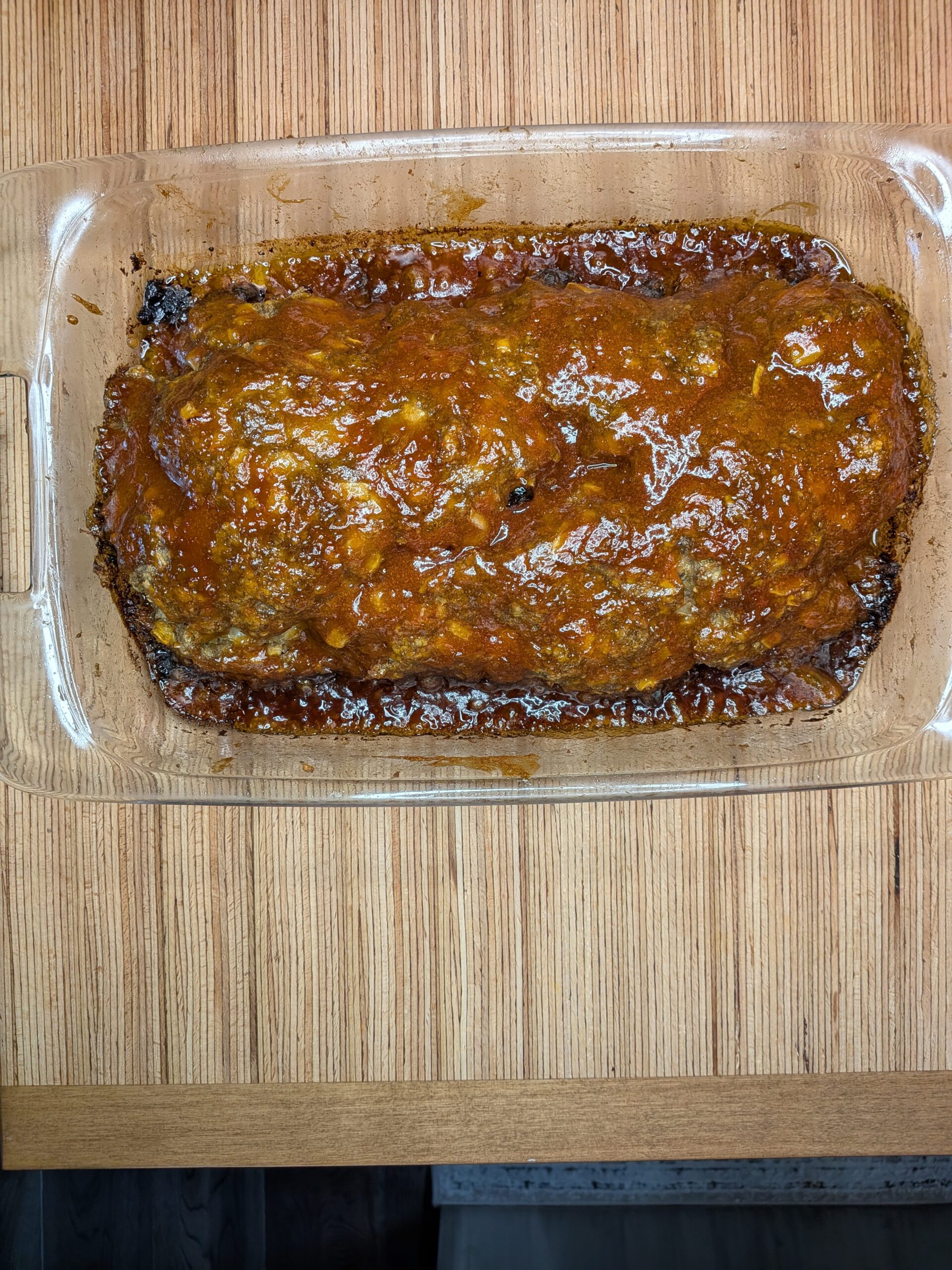 I kept the onions and bell peppers from my mom’s recipe because they add great flavor and moisture to the meat. I used oatmeal like my Mother-in-Law does, which helps hold the meatloaf together while keeping it tender. And of course, I finished it with that delicious glaze made from ketchup, brown sugar, and mustard.