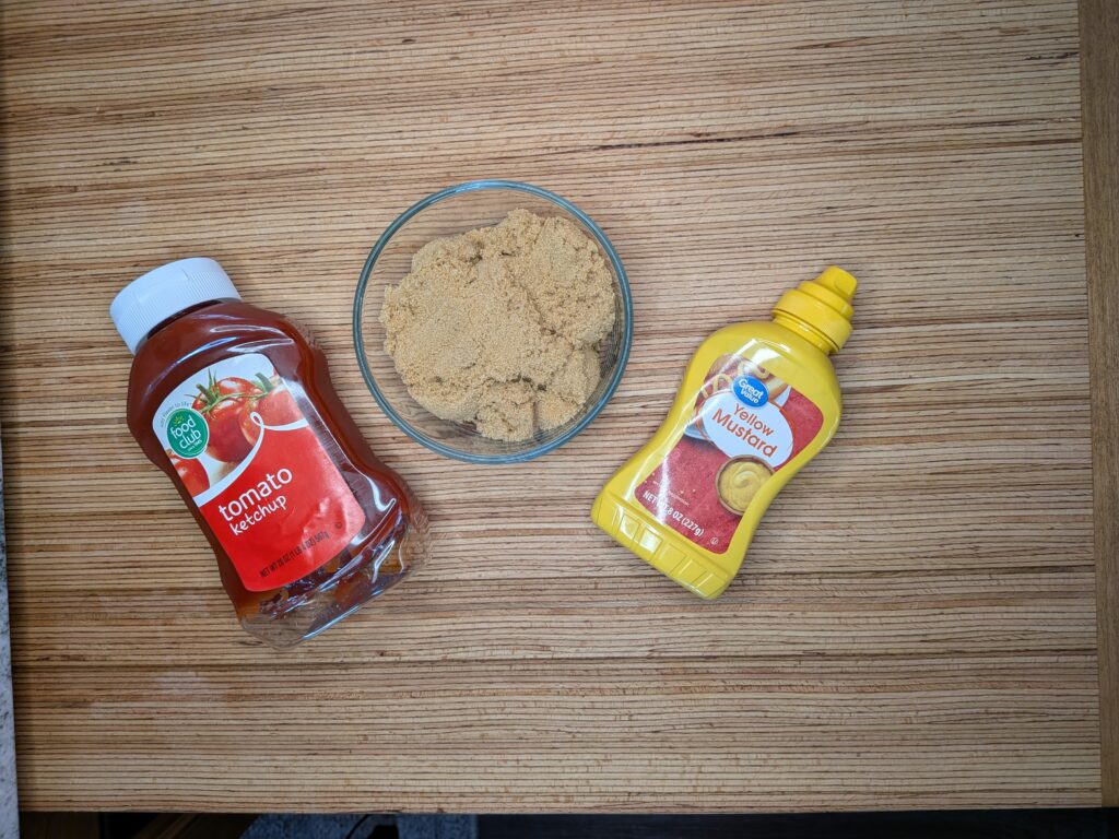 - In a cereal bowl, add in the ketchup, brown sugar, and mustard.